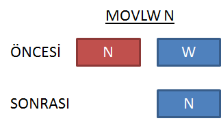 MOVLW N | N⇒W N sabit sayısını W'ya kopyalar. |