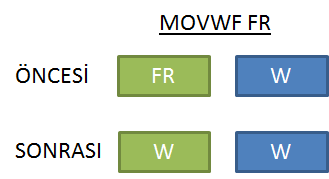 MOVWF FR | W⇒FR W'yi FR'ye kopyalar. |
