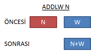 ADDLW N | N+W⇒W Sabit Sayı N ile W'yi toplar ve sonucu W'ya yazar. |