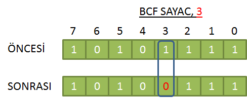 Eğer FR'nin B. biti haluhazırda 0 ise, BCF komutu bir değişiklik yapmaz.
