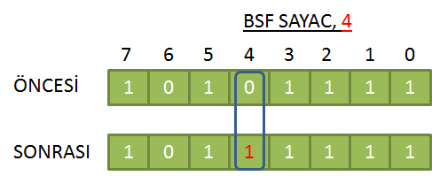 Eğer FR'nin B. biti haluhazırda 1 ise, BSF komutu bir değişiklik yapmaz.