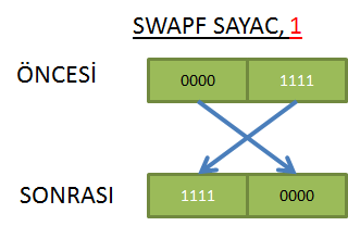 SWAPF FR'nin ilk ve son dört bitini yer değiştirir ve sonucu hedef H'ye yazar.