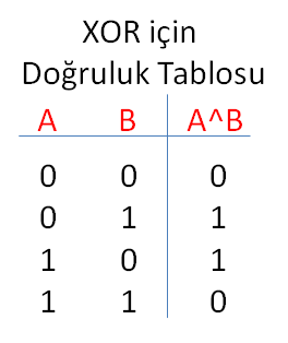XORLW N | N^W⇒W Sabit Sayı N ile W'yi, XOR mantık işleminden geçirir ve sonucu W'ya yazar. |